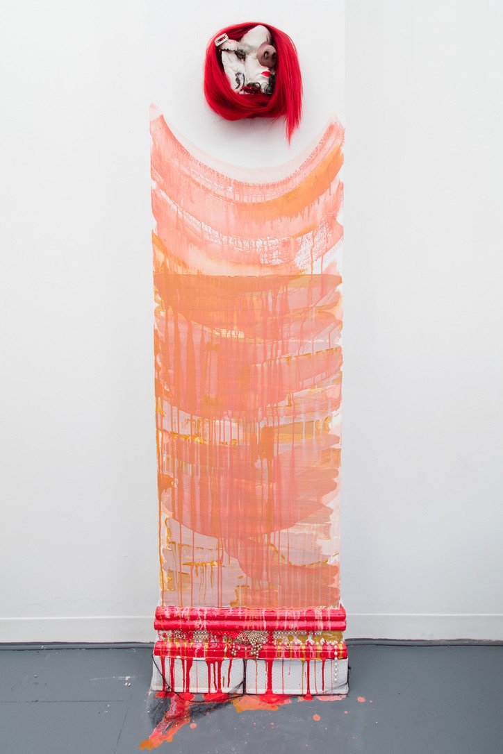 synthetic hair, plaster, alginate, glue, paint, mask, board
